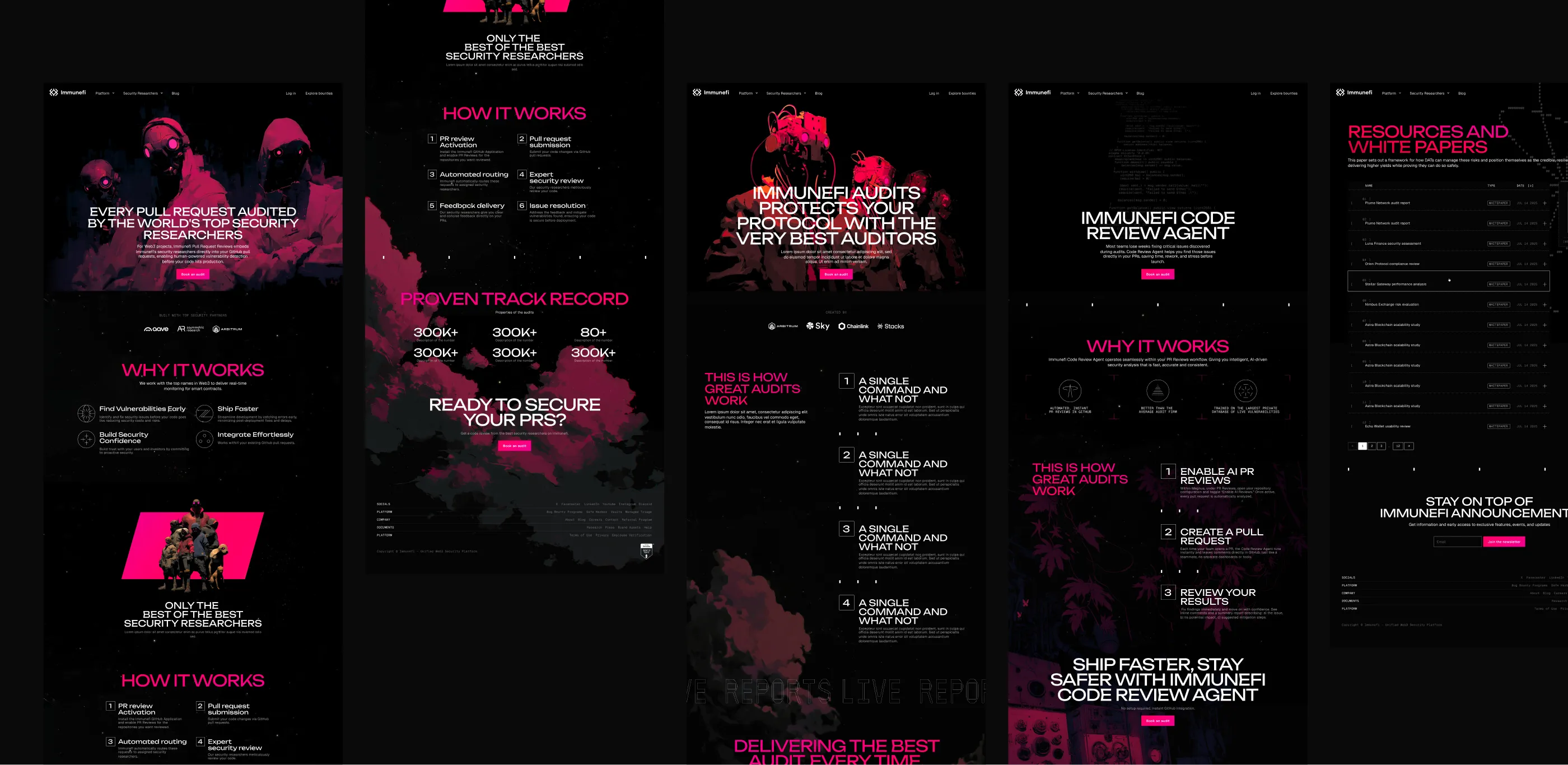 We wanted to build it as an extension of Immeunfi's brand world but also as an expansion of their soul into the future. We wanted to imagine how the world would look if Immunefi were to win the crypto security war and the future became safe for all. The future we imagined was one hundred percent Immunefi but it looked different, the tech had become organic and the dreary black had morphed into hopeful white but the essence remained clearly there an it was epic as always.